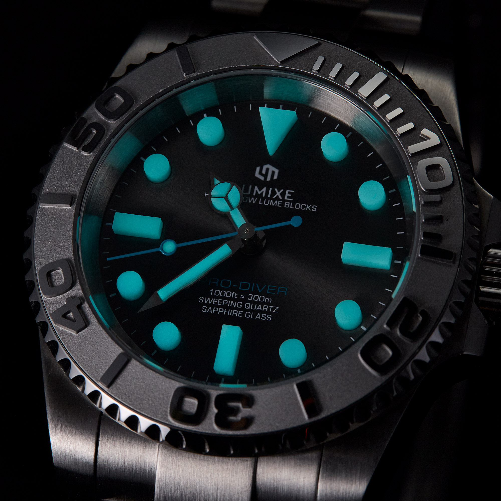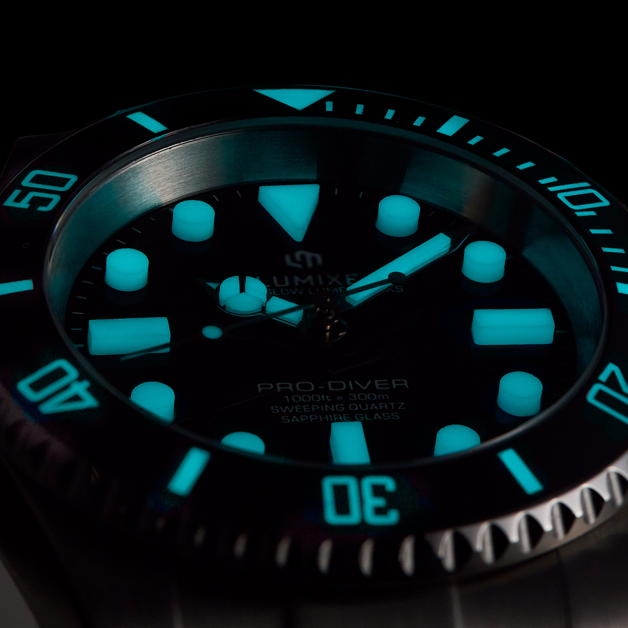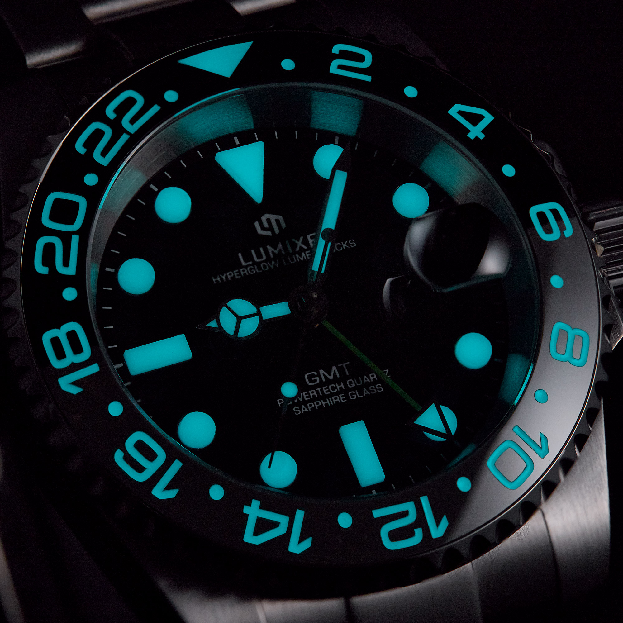 Hyperglow lume block system make the watch keep 8 hours visible in dark.